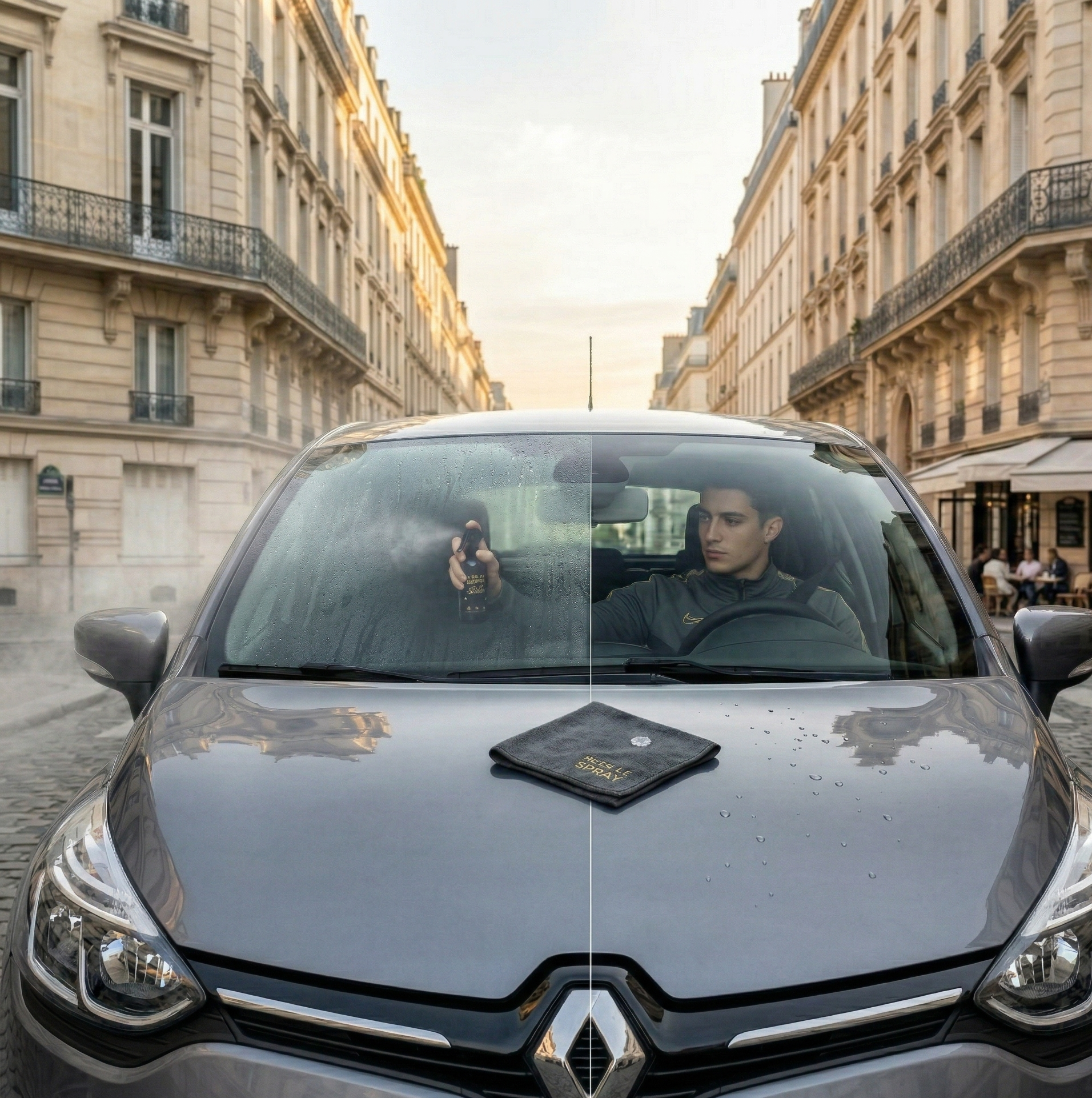 Absolument pas. Contrairement aux produits classiques, "Mets le Spray" intègre un agent dégraissant actif. Il nettoie les impuretés et la nicotine, laissant votre vitre parfaitement transparente, sans aucun reflet gênant, même la nuit.